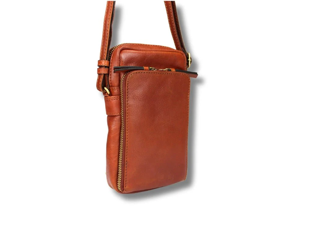 Cognac Leren Telefoontasje – Beau