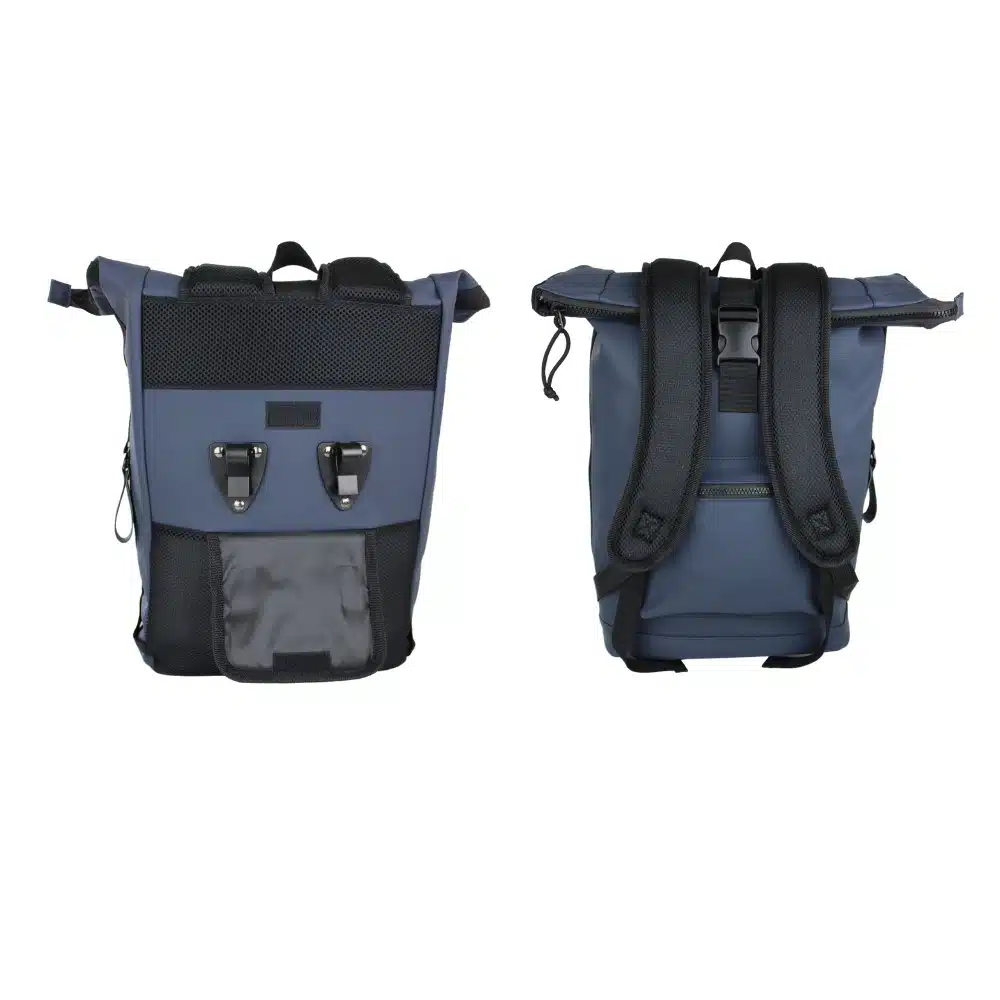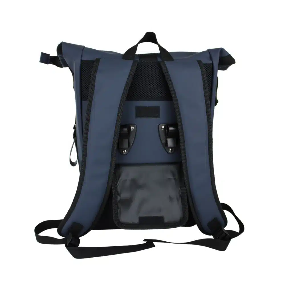 Bovendien zorgt het waterafstotende PU-materiaal ervoor dat je bezittingen droog blijven, zelfs tijdens regenachtige ritten. De gevoerde schouderbanden en achterzijde zorgen voor extra comfort en ventilatie, waardoor je de tas langdurig kunt dragen zonder ongemak.