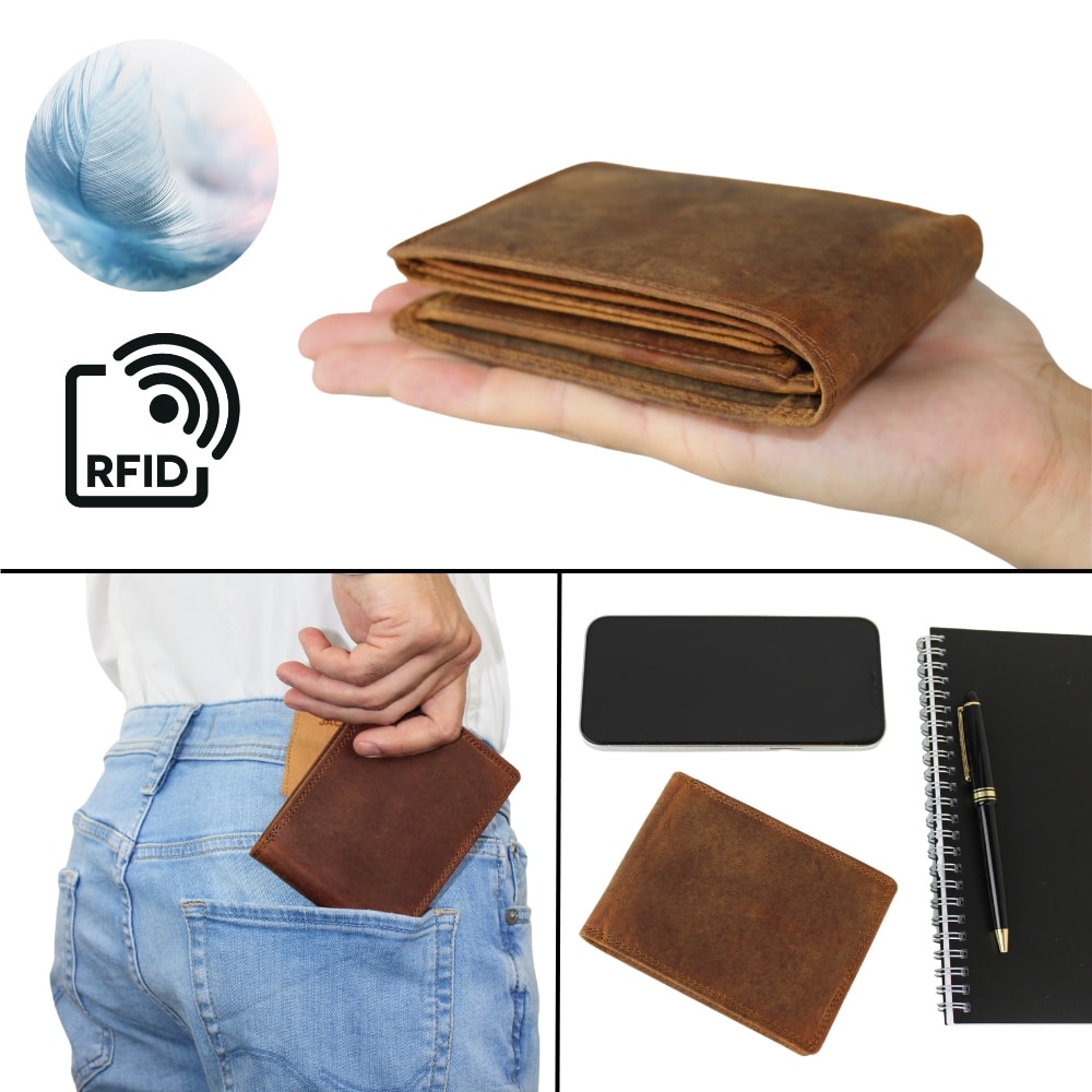 · Slim ontwerp: Deze portemonnee is met zorg ontworpen om aan de behoeften van de moderne man te voldoen. Het heeft een slank ontwerp dat niet te omvangrijk aanvoelt, maar tegelijkertijd alle functies biedt die je nodig hebt.