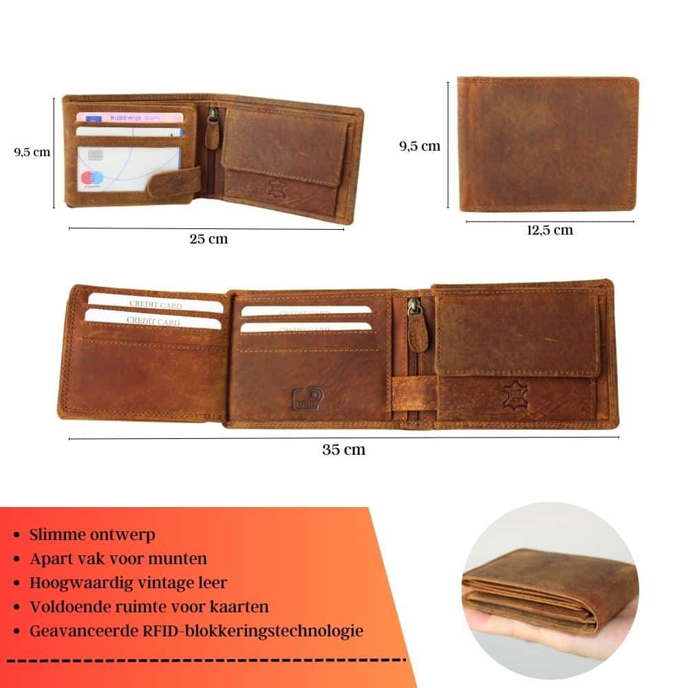 Ben je op zoek naar een heren portemonnee die niet alleen functioneel is, maar ook een vleugje stijl toevoegt aan je dagelijkse outfit? Zoek niet verder! Onze herenportemonnee van echt leer, in een tijdloos bruin vintage design, is de perfecte keuze voor de moderne man. Met zijn afmetingen van 9,5 cm in de gesloten toestand en 12,5 cm in enkele staat, en een ruime 25 cm wanneer je hem opent, biedt deze portemonnee de perfecte balans tussen compactheid en voldoende opbergruimte voor al je essentiële items.