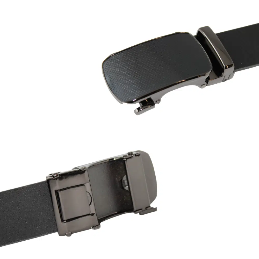 Deze prachtige klikriem met automatische gesp is gemaakt van hoogwaardig echt leer. Het klassieke en stoere ontwerp maakt deze riem geschikt voor vrijwel elke gelegenheid. Wat deze riem echt uniek maakt, zijn de sleuven die over de gehele lengte van de riem lopen. Dit is een exclusief ontwerp van Fana Belts. De riem is volledig zwart, inclusief de gesp, waardoor hij moeiteloos te combineren is met elke outfit.