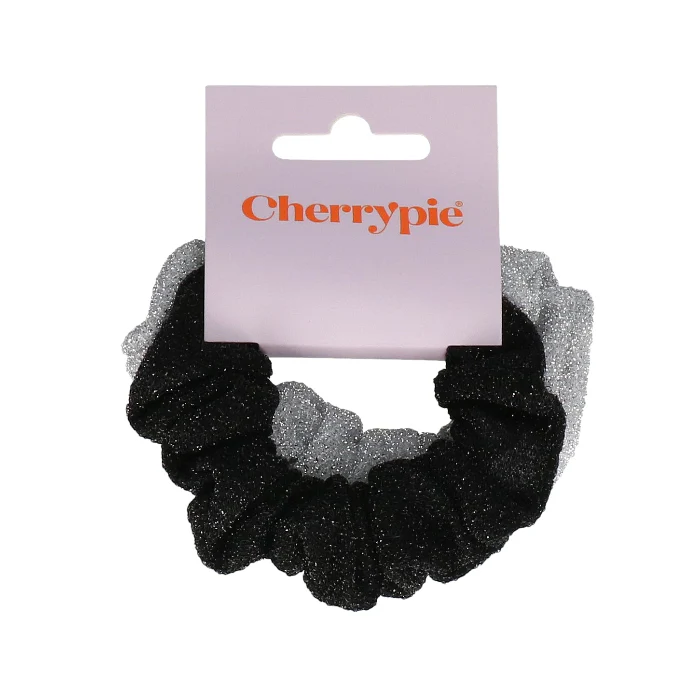 Tijdloos en stijlvol: de Scrunchie Shiny Set in zwart en lichtgrijs. Voeg een glanzend detail toe aan je kapsel — perfect voor elke gelegenheid.