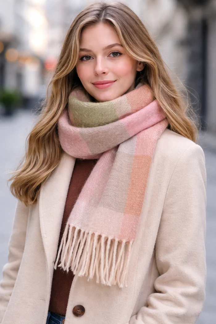 Ga voor een frisse, zachte winterlook met deze lichtroze/lichtgroene sjaal! De pasteltinten maken elke outfit meteen lief en licht, terwijl de fijne stof heerlijk warm blijft. Ideaal voor dagelijks gebruik, shoppen, wandelen of een subtiele kleurboost. Comfortabel, modern en superzacht. Te koop bij SoLow!